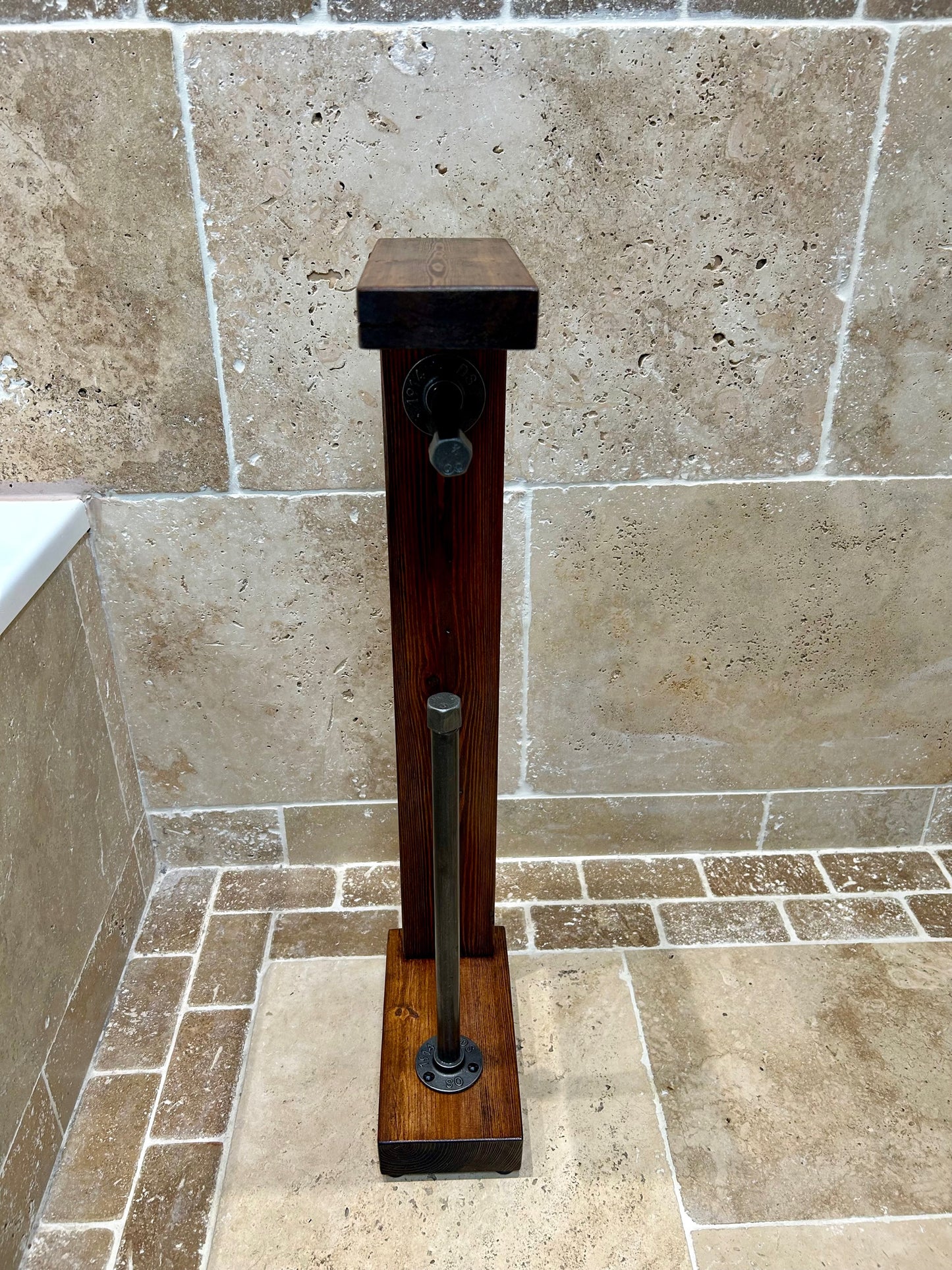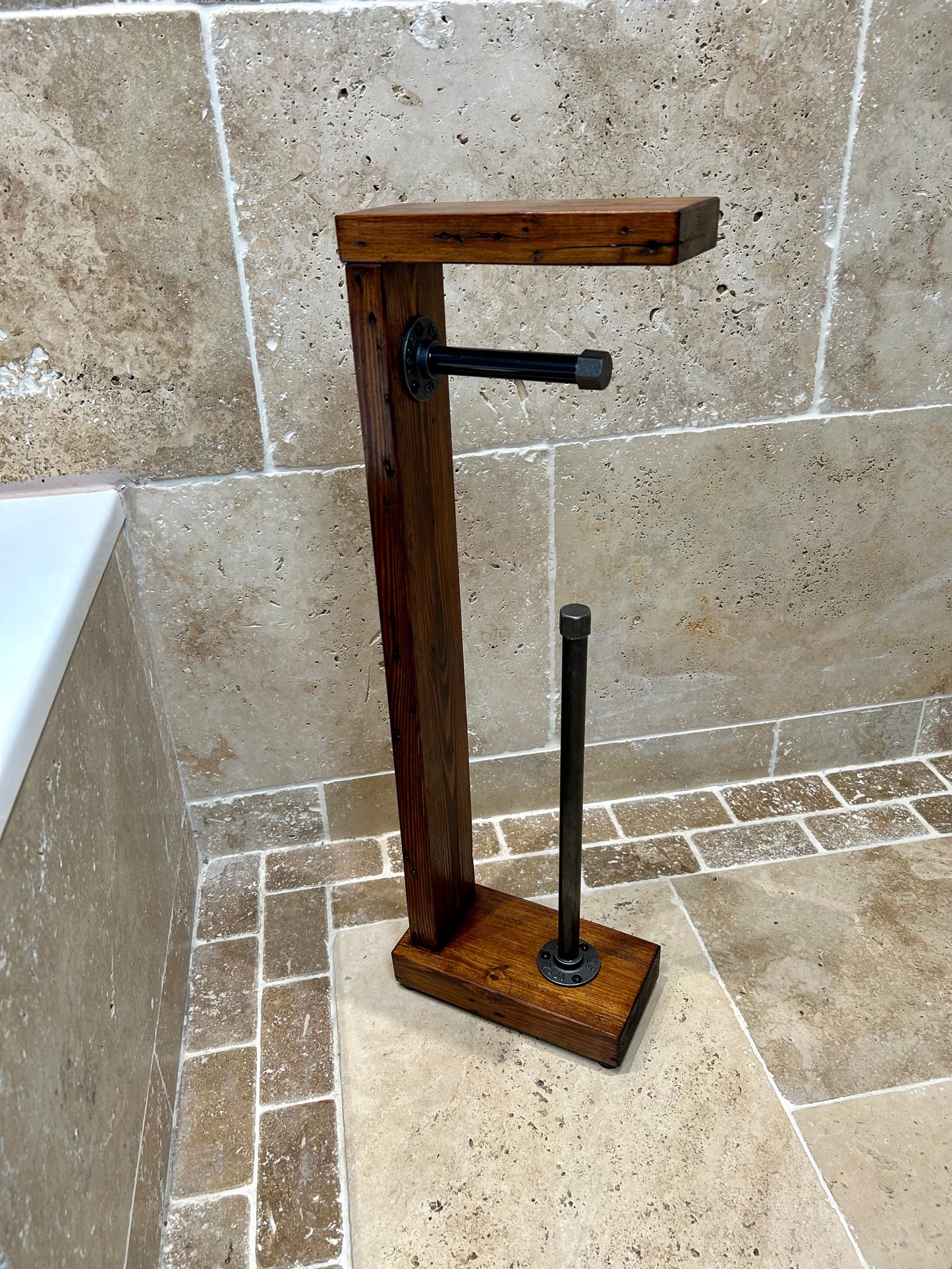 Our Reclaimed Timber & Pipe Toilet Roll Holder is crafted from lovely aged reclaimed timber, giving a unique rustic charm to this piece whilst the pipework with its rugged outlines adds an edgy industrial style.
