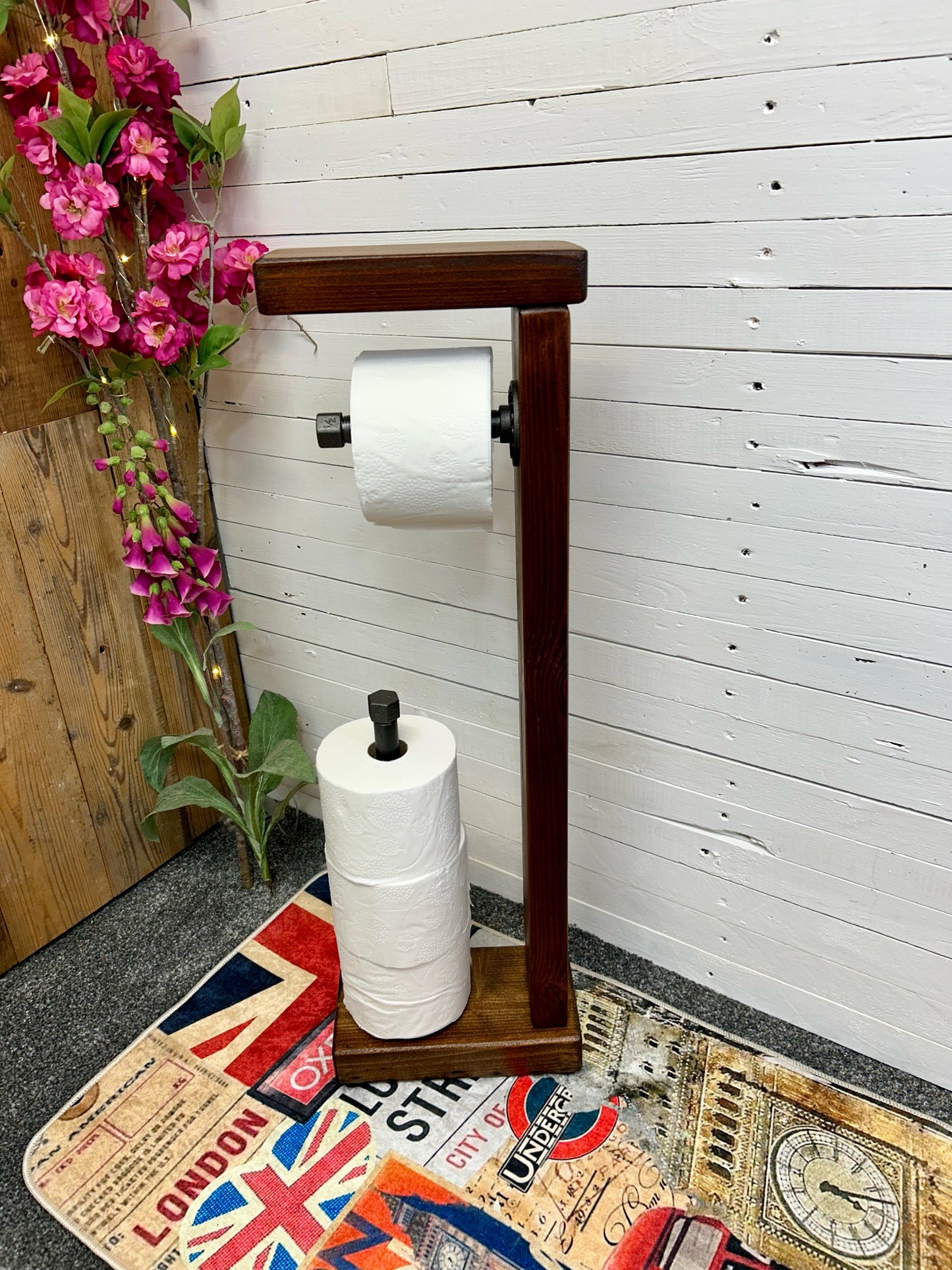 The result is a nice chunky 36mm thick & 95mm wide timber pieces. The overall height is 760mm. The base piece of timber is 44mm thick and slightly wider with a finished depth of 250mm. The pipework holds one roll to be used and has storage for four more rolls. Being of steel pipes this has a substantial weight and sits sturdily on the floor.